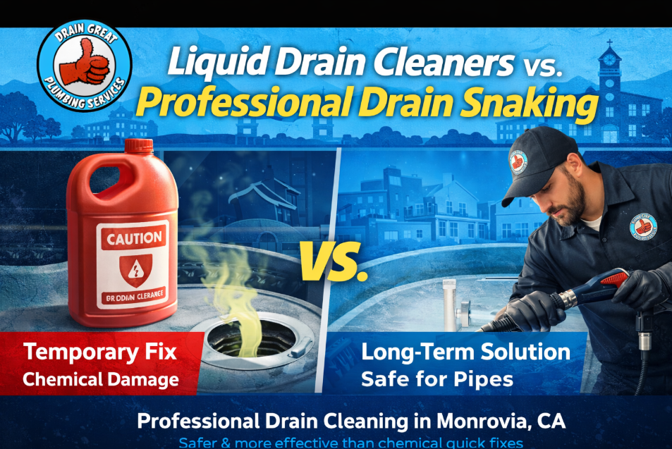 Sick of Slow Drains? The Truth About Liquid Drain Cleaners vs. Professional Snaking Why Slow Drains Are So Common in Monrovia Homes If you’re dealing with slow drains in your kitchen or bathroom, you’re not alone. Many homeowners struggle with recurring clogs, foul odors, and sinks that take forever to empty and drain cleaning in